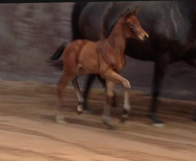 This filly is quite spectacular. Long legged, super correct, uphill and very pretty - with movement that was already swinging at only 7 days of age. Her breeding is exceptional. She is by Bordeaux (United x Gribaldi x Donnerhall) and out of one of the very best mare lines in Oldenburg. Donnerhall features on both sides of the pedigree, along with 5 other Grand Prix stallions: De Niro, Rubinstein, Partout, Krack C and Gribaldi, and two PSG/Inter I stallions Sandro Hit and United. Her mother, Lady Sun, is Elite (having bred a licensed stallion and serveral State Premium mares) and so too is her grand mother, great grandmother and great great grandmother. The licensed stallions Decamerone, Touch of Love and Furst Wilhelm share the same great grandmother. And one of the PSI auction price highlights, the stunning Bonaire, is closely related to this filly - video of Bonaire can be seen at the end of the video of Bordeaux on the Schockemoehle web site.